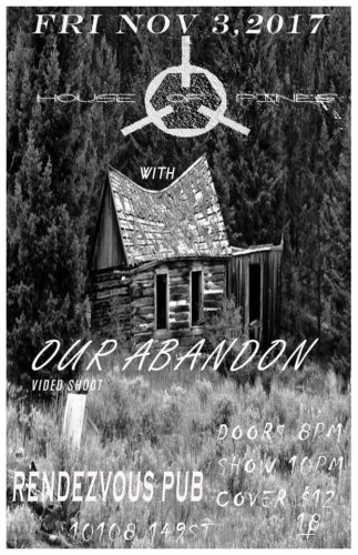 House of Pines is proud to open for Our Abandon, live at Rendezvous Pub! We have a great set planned including our old favorites, covers and new material. Come on out and rock with us this Friday night!